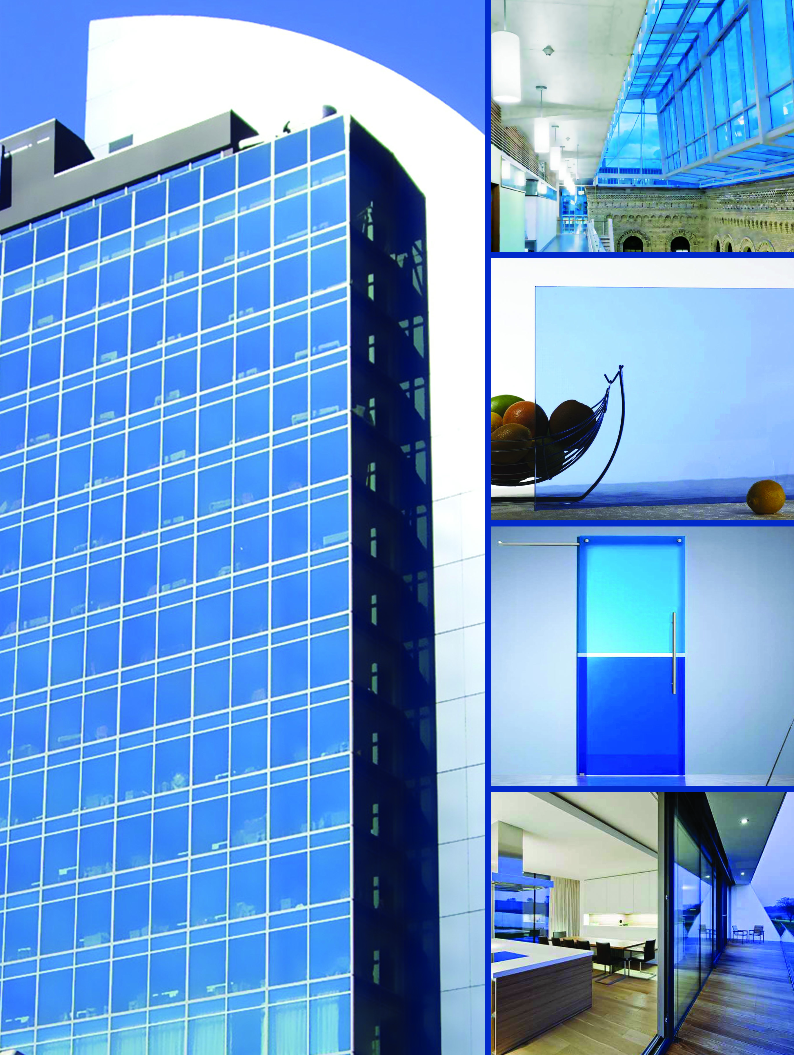 Ghani Blue Glass is primarily used in outdoor cladding, especially for a conservatory, and can also be used in furniture, interiors and decorative displays.